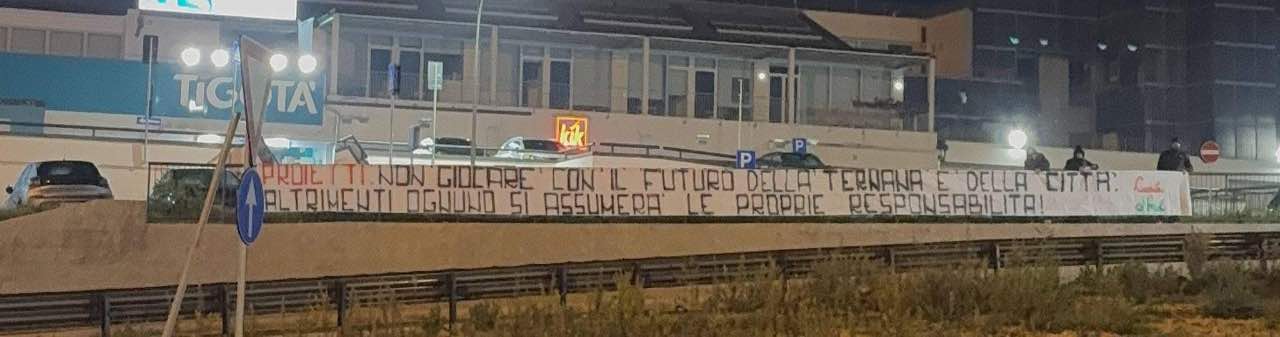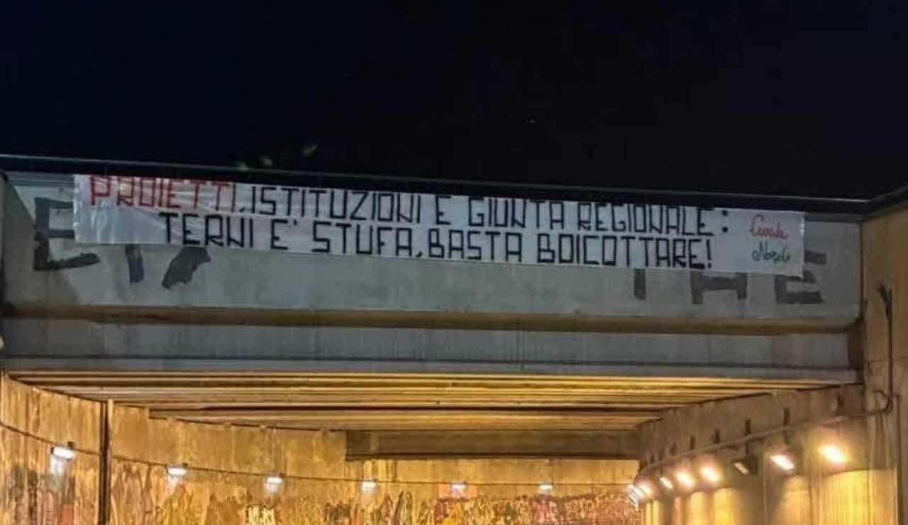 Si parte da quello al Tulipano che recita: “Proietti, non giocare con il futuro della Ternana e della città altrimenti ognuno si assumerà le proprie responsabilità” per poi passare al cavalcavia del Ra.T.O. “Terni ha la sua dignità mai schiavi di un’altra città”, per poi giungere a Vocabolo Fiori dove invece ce n’è uno con su scritto “Proietti, istituzioni e giunta regionale: Terni è stufa, basta boicottare!”. Al sottopasso di viale Cesare Battisti con il classico “Terni merita rispetto!” mentre in un altro sottopasso c’è scritto “Terni non starà a guardare occhio a quello che fate!”.